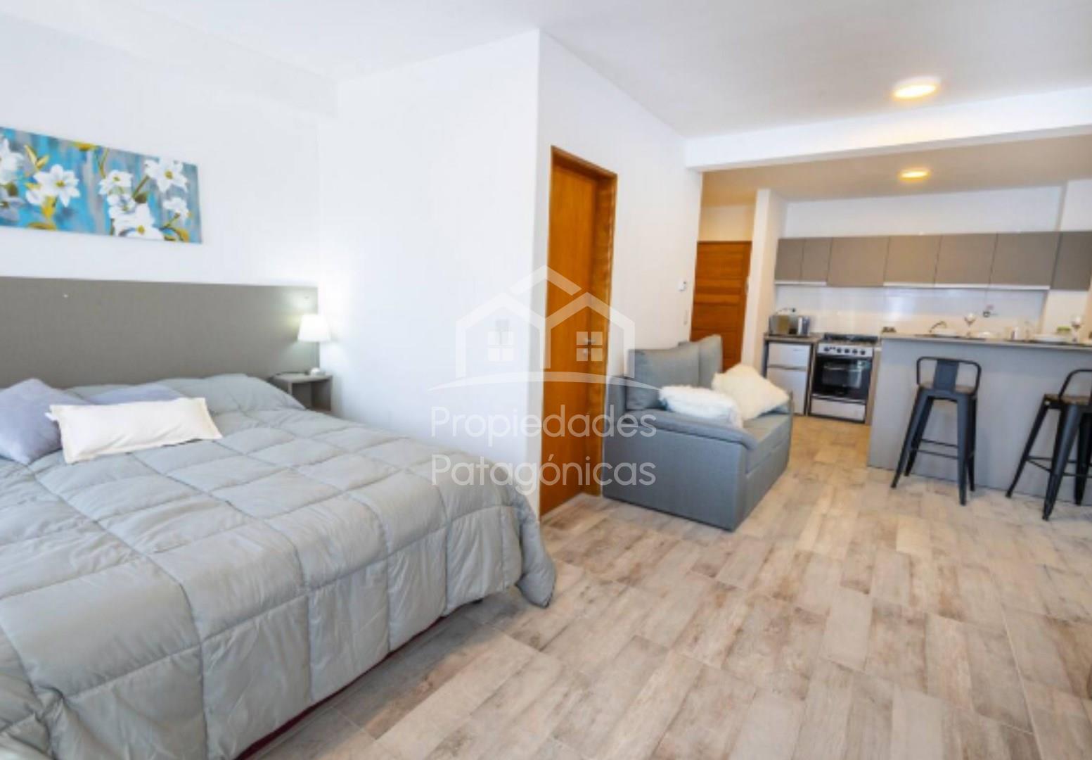 Hermoso departamento monoambiente amplio, categoría premium totalmente equipado y acondicionado para 2 personas. ALQUILER TEMPORARIO HASTA 3 MESES Cuenta con cocina completa, con todos sus elementos (microondas, cafetera, tostadora, heladera) todo nuevo a estrenar, muebles a medida, barra/mesa desayunadora, sillas, cama de 2 plazas de excelente calidad y confort. El edificio cuenta con sistema de llave digital de ingreso, con cámaras y monitoreo. Cuenta con un espacio de guardado para vehiculos en el sector de planta baja al frente. El precio de alquiler contempla los gastos y servicios esenciales (agua, luz, gas, impuestos municipales). TIPO DE CONTRATO: Temporario de 3 meses con opción de renovación. No apto mascotas, No apto niños. Por tratarse de un monoambiente, solo se permite el máximo de 2 personas. REQUISITOS: Ingresos comprobables, garantias propietarias o con recibo de sueldo con antigüedad.
