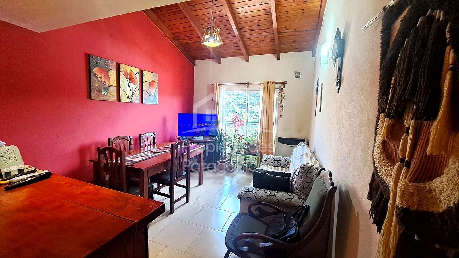 Departamento tipo duplex, APTO CRÉDITO en el macrocentro de Bariloche. Esta propiedad se encuentra en un segundo piso por escaleras en un edificio moderno y funcional en una zona de la ciudad de cuenta con todos los servicios y la infraestructura. Al ingresar nos encontramos con una cocina y living comedor con mesada, grifería, espacio para heladera, aberturas termopanel con luz natura y vista al espacio verde del edificio. Por la escalera interna subimos al domitorio principal con un espacio de guardado que puede adaptarse para colocar una cama catre o colchonetas, un baño completo con bañera, un segundo dormitorio con placard a medida. Incluye cochera exclusiva a la que se accede por portón de ingreso al edificio. Llamenos para coordinar una visita a esta propiedad ideal para familia o para la inversión. Servicios del edificio: Luz, gas, agua, cloacas, internet. edificio APTO CRÉDITO. Expensas: $65.000 aprox
