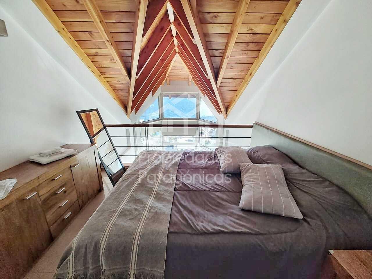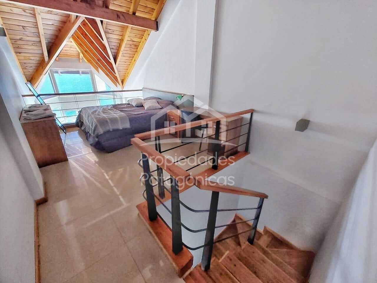 Departamento sobre calle Salta tipo duplex, octavo y noveno piso (tipo duplex) con cochera, baulera y lavadero a parte, orientación norte por lo que lo hace super luminoso. Tiene garantizado increibles vistas abiertas al lago Nahuel Huapi. Por su ubicación es una excelente oportunidad de vivir en pleno centro de la ciudad o tambien como inversion y tener una excelente renta por alquileres turisticos. Al ingresar tenemos pasillo de distribución, baño completo con bañera, cocina con barra desayunadora, mesadas de granito (gris mara), bajo mesada, estractor integrada a la cocina tenemos el living con ventanales de doble altura carpinteria de primera calidad (oscilobatiente) con vidrios dvh, en planta alta tenemos otro baño completo con bañera, pasillo de distribucion, placar, amplio dormitorio con sector de escritorio. La calefaccion es por loza radiante con su caldera dual individual, pisos de porcelanato. A metros de av. San Martin cerca de todo, zona de restaurant, pub, cafeterias, wine bar, chocolaterias, comercios, bancos, etc. L Cuenta con cochera de 15,5 m2 en el primer piso (para camioneta grande) consultanos