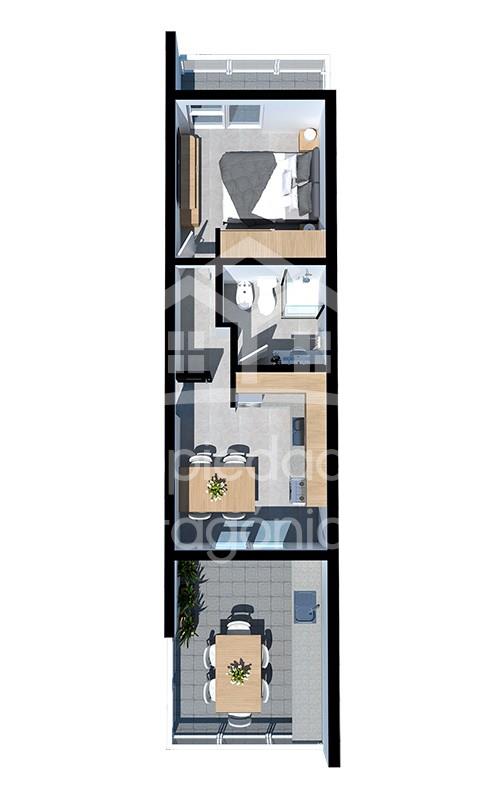 Departamento 1A al FRENTE, con 48m2 en total (44 M2 CUBIERTOS, 8 DE BALCON ). precios promocionales PRE LANZAMIENTO DE POZO (inicio de la obra primer trimestre del 2026). ANTICIPO u$d 25.785. MAS 48 CUOTAS DE u$d 1.612. Ubicación super céntrica a metros de calle Mitre, ideal para renta turística. El proyecto está ubicado en una zona privilegiada, a solo 100 metros de la calle principal, lo que facilita el acceso a una amplia variedad de comercios, restaurantes y servicios locales. Las unidades frontales del edificio ofrecen espectaculares vistas al lago Nahuel Huapi, brindando un entorno único que combina atractivo visual y serenidad. El complejo cuenta con 39 departamentos de uno y dos ambientes, diseñados para ofrecer diversas comodidades que se ajustan a las necesidades y preferencias de los inversores, ofreciendo múltiples opciones según sus intereses. Los departamentos están distribuidos en dos bloques separados por un patio común, lo que garantiza una excelente iluminación natural en todas las unidades y fomenta una mayor privacidad entre ellas. Estructura de hormigón armado sismorresistente. Muros exteriores e interiores de mampostería. Revestimientos exteriores de piedra natural, siding, revear y en sus laterales chapa sinusoidal. Terminación interior con enlucido de yeso pintado al Látex. Cerámicos de primera calidad en pisos y revestimientos de baños y cocinas. Porcelanato en pisos de sectores comunes. Ventanas de PVC con vidrio termo panel. Puertas de seguridad en ingreso de los departamentos, puertas placa en los interiores. Artefactos sanitarios y griferías de primera calidad. Calefacción por radiadores. Materiales aprobados de primera calidad en instalaciones sanitarias, eléctricas, de calefacción y gas.