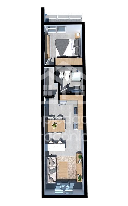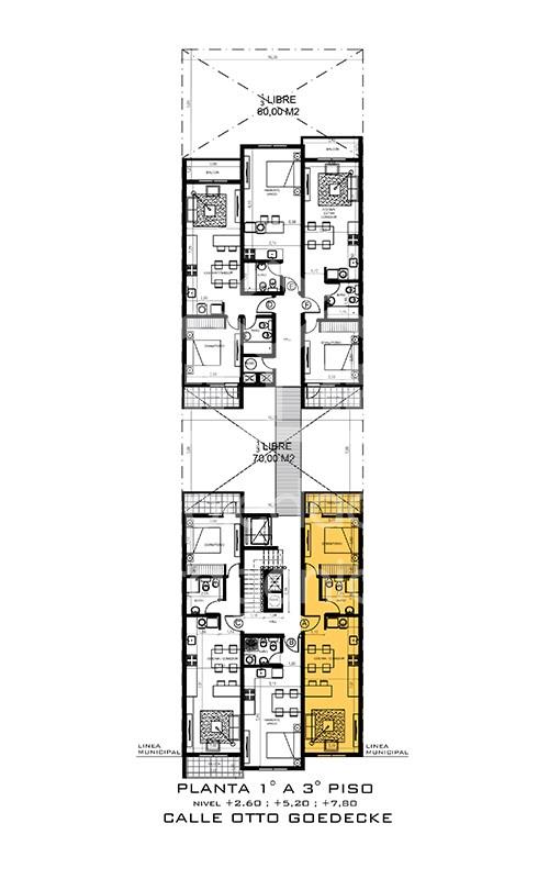 Departamento PB C al contrafrente, con 85 m2 en total. precios promocionales PRE LANZAMIENTO DE POZO (inicio de la obra noviembre 2025). ANTICIPO u$d 38,050. MAS 48 CUOTAS DE u$d 2.378. Ubicacion super centrica a metros de calle Mitre, ideal para renta turística. El proyecto está ubicado en una zona privilegiada, a solo 100 metros de la calle principal, lo que facilita el acceso a una amplia variedad de comercios, restaurantes y servicios locales. Las unidades frontales del edificio ofrecen espectaculares vistas al lago Nahuel Huapi, brindando un entorno único que combina atractivo visual y serenidad. El complejo cuenta con 39 departamentos de uno y dos ambientes, diseñados para ofrecer diversas comodidades que se ajustan a las necesidades y preferencias de los inversores, ofreciendo múltiples opciones según sus intereses. Los departamentos están distribuidos en dos bloques separados por un patio común, lo que garantiza una excelente iluminación natural en todas las unidades y fomenta una mayor privacidad entre ellas. Estructura de hormigón armado sismorresistente. Muros exteriores e interiores de mampostería. Revestimientos exteriores de piedra natural, siding, revear y en sus laterales chapa sinusoidal. Terminación interior con enlucido de yeso pintado al Látex. Cerámicos de primera calidad en pisos y revestimientos de baños y cocinas. Porcelanato en pisos de sectores comunes. Ventanas de PVC con vidrio termo panel. Puertas de seguridad en ingreso de los departamentos, puertas placa en los interiores. Artefactos sanitarios y griferías de primera calidad. Calefacción por radiadores. Materiales aprobados de primera calidad en instalaciones sanitarias, eléctricas, de calefacción y gas.