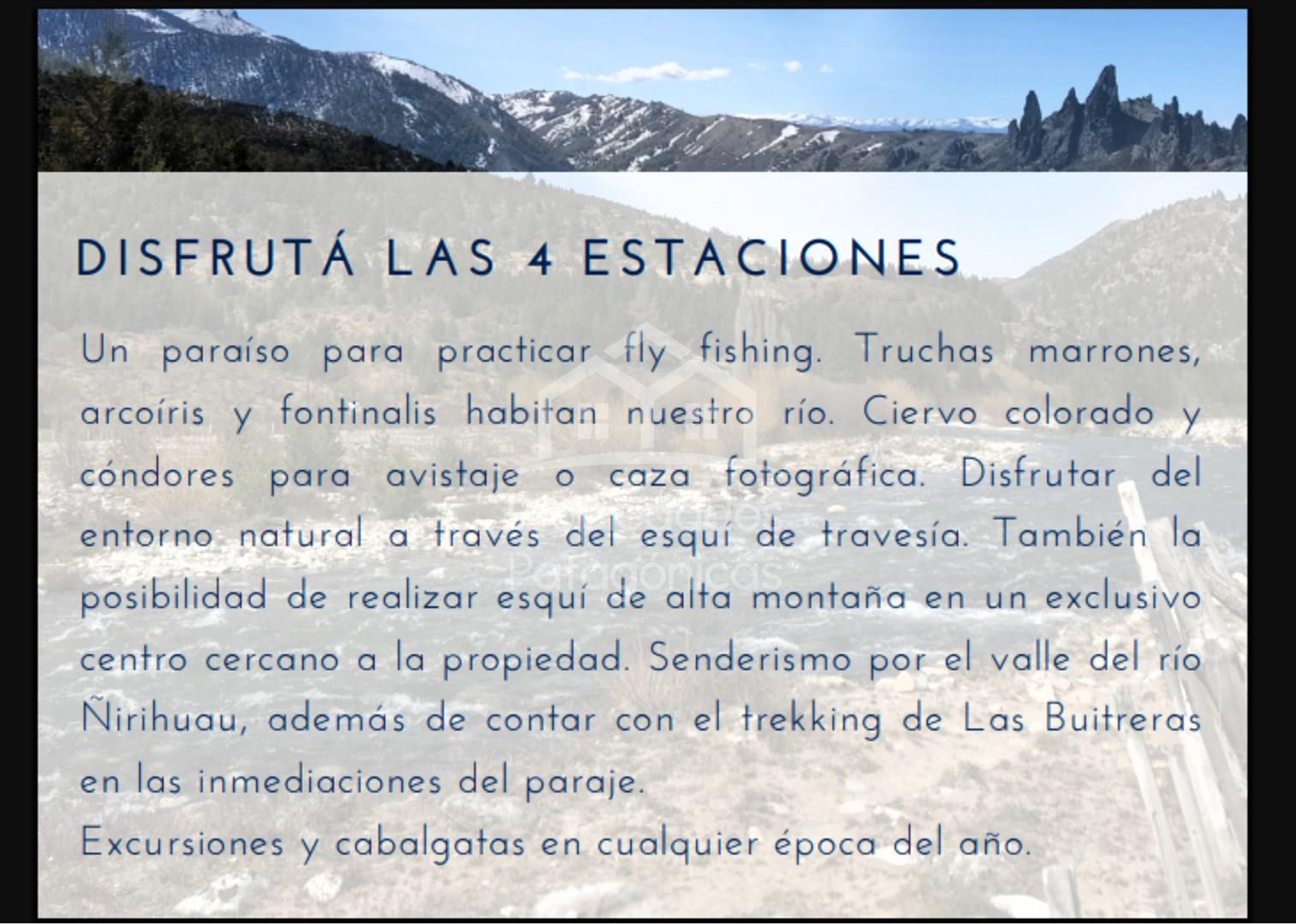 Exclusivo loteo de FRACCIONES en Valle del Ñirihuau: un pedazo del paraíso! Se encuentra a 20km del aeropuerto de San Carlos de Bariloche, y a 25km del centro de la ciudad. En un entorno rodeado de naturaleza pura donde se respira paz y se disfruta de la belleza incomparable de la patagonia andina en una zona de transicion entre estepa y cordillera. Este lugar se encuentra especialmente conservado y protegido para que vivas una experiencia única y exclusiva. El loteo se encuentra próximo al rio Nirihuau, donde puedes acceder facilmente y disfrutar del agua pura y cristalina que lo caracteriza. A pocos kms se encuentra "La Buitrera", un atractivo natural donde podrás avistar el vuelo del cóndor andino. En el lugar cohabitan ciervos, zorros, liebres y gran variedad de aves. Apto para la construcción de vivienda propia: casa de campo, cabaña. La zona tiene provision de electricidad por parte de EDERSA La provision de agua corre por cuenta y responsabilidad del desarrollador (parte vendedora). Para acceder se ingresa por ruta nacional 40 a la altura de la ruta de mountain bike "La Paloma". Especificaciones: Venta: escritura en condominio. Consulte factibilidad de construcción. Acceso por calle de ripio. *DESCUENTOS POR TIEMPO LIMITADO * FACILIDAD DE COMPRA Y FINANCIACIÓN LOTE 16: PRECIO DE LISTA: U$D 69.174 PRECIO PROMOCION 30%: U$D 48.421