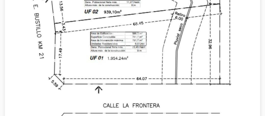 Oportunidad !!! Lote de 1954,24 m² sobre Avenida Bustillo kilómetro 21. En la ruta de Circuito Chico un entorno natural los espera, naturaleza y tranuilidad en un lugar único. El terreno posee Gas de Camuzzi, Electricidad de la CEB, Agua de red ARSA y Asfalto en Av. Bustillo En forma especial esta UF01 ya tiene APROBADO un Hotel de 600 m con 12 habitaciones, servicio de gastronomía y un salón de recepciones multiuso. Se puede tramitar otro proyecto y uso, o comenzar con la construcción del hotel sin realizar tramitación alguna, previo coordinar con el arquitecto proyectista. PRECIO DE CONTADO: USD 218.900 - FINANCIADO: ANTICIPO USD109,440 Y 18 CUOTAS MENSUALES DE USD7600 Superficie de la parcela ... 1954,24 Area de Edificación ........... 586,3 Superficie Construible ...... 781,7 Altura max. de la construcción 9 m